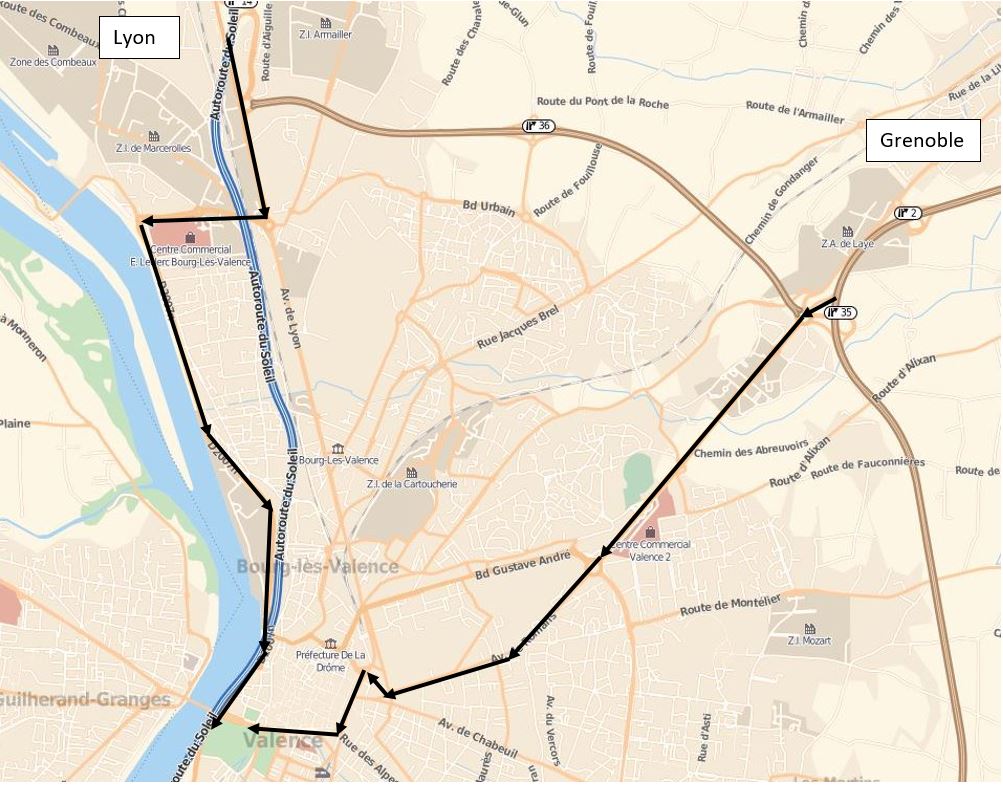 En venant de Grenoble, sortir à Valence centre, et redescendre jusqu'au